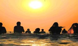 मिथिलामा आज अस्ताउँदो सूर्यलाई अर्घ दिँदै चैती छठ पर्व मनाइँदै