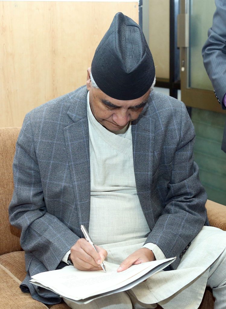 नयाँ सरकार गठनका लागि दाबी पेस गर्ने कागजमा ओली र देउवाले गरे हस्ताक्षर