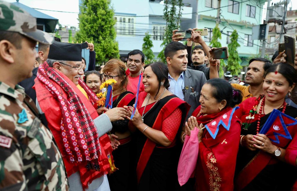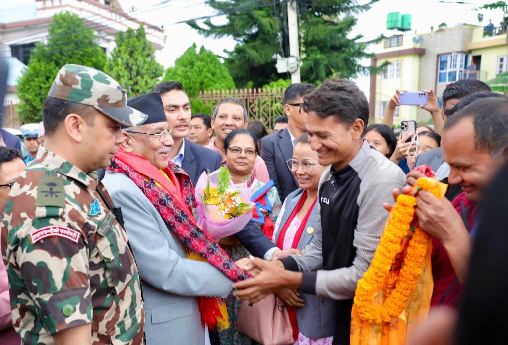 प्रचण्ड खुमलटार पुग्दा स्थानीयले उनलाई स्वागत गरेका हुन् ।