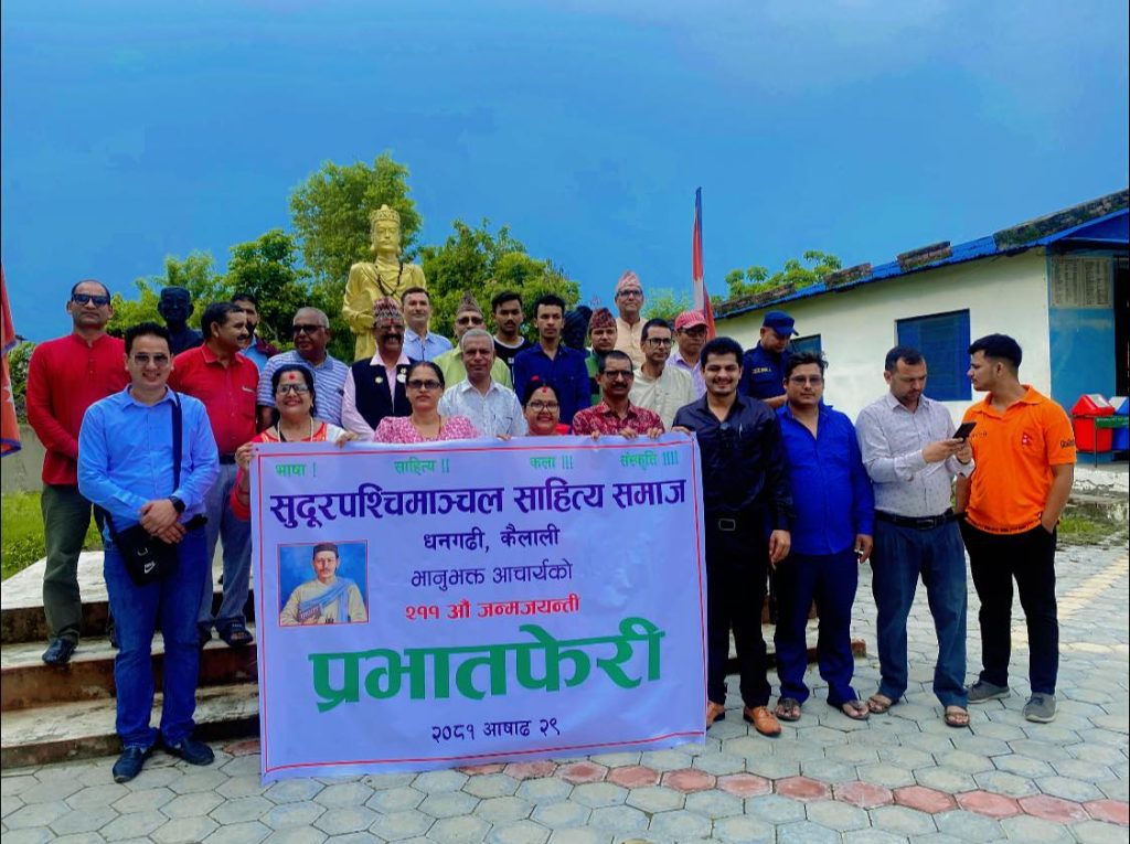 साहित्य समाजले आदिकवि भानुभक्त आचार्यको २११औं जन्मजयन्तीका उपलक्ष्यमा प्रभातफेरी गर्नुका साथै पुस्तकमाथि परिचर्चा गरेको हो। प्रभातफेरी भानुभक्तीय रामायणका श्लोकले गुन्जाएमान पारिएको थियो।