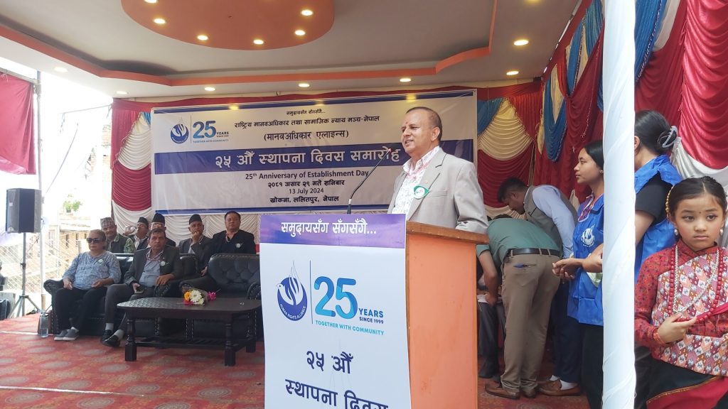 ललितपुरको खोकनामा आज आयोजित राष्ट्रिय मानवअधिकार तथा सामाजिक न्याय मञ्च नेपाल (मानवअधिकार एलाइन्स)को २५औँ स्थापना दिवस समारोहमा उनले राजनीतिक दल कमजोर भएमा लोकतन्त्र, मानवअधिकार र जनअधिकार सुनिश्चित हुन नसक्ने बताए ।