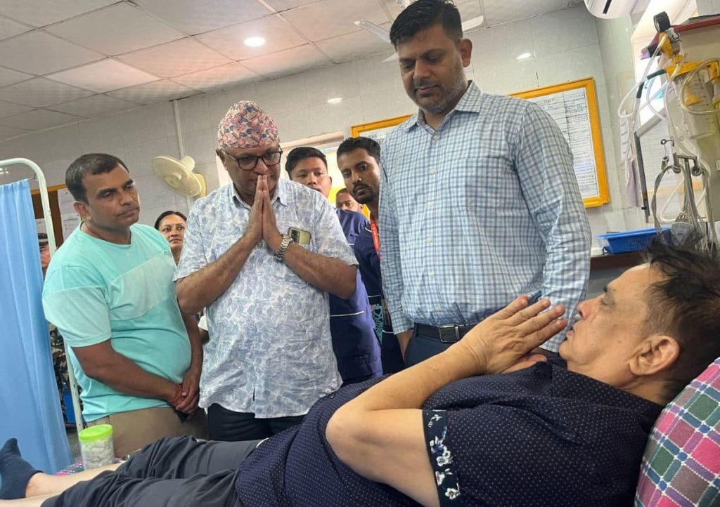 आचार्यलाई भेट्न कोशी प्रदेशका मुख्यमन्त्री हिक्मत कार्की पनि अस्पताल पुगेका थिए ।