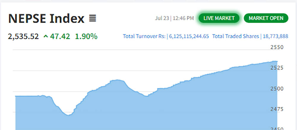 २९ महिनापछि नेप्सेले पार गर्याे २५ सय अंक