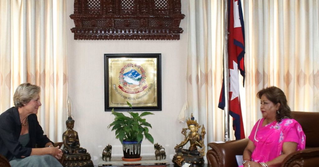 काठमाडौँ । परराष्ट्रमन्त्री डा आरजु राणा देउवासँग नेपालका लागि युरोपियन युनियनका राजदूत भेरोनिक लोरेञ्जोले शिष्टाचार भेट गरेका छन् ।