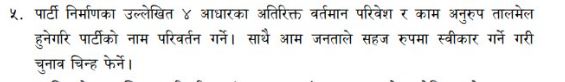 पार्टी निमार्णका लागि विभिन्न काम गर्नुपर्ने भन्दै शर्माले ‘वर्तमान परिवेश र काम अनुरुप तालमेल हुने गरी पार्टीको नाम परिवर्तन गर्ने र साथै आम जनताले सहज रुपमा स्विकार गर्ने गरी चुनाव चिन्ह फेर्ने’ प्रस्ताव बैठकमा राखेका छन् ।