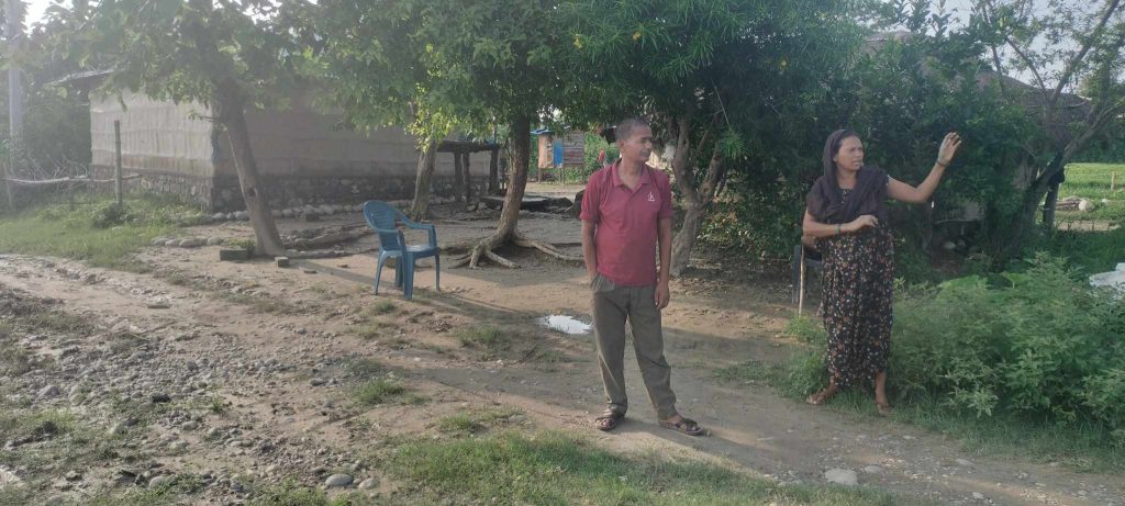 कञ्चनपुर । नजिकै जोगबुढा नदी बगिरहेको छ । खेती गरेको जमिन पूरै जलमग्न छ, कतै नदीको बाढी पसेर जमिन कटान गरेको छ । दोधारा चाँदनी नगरपालिका–३ पटराखल्लाका स्थानीय कतिबेला विपद् आइपर्ने हो भनेर अझै त्रासमै छन् ।