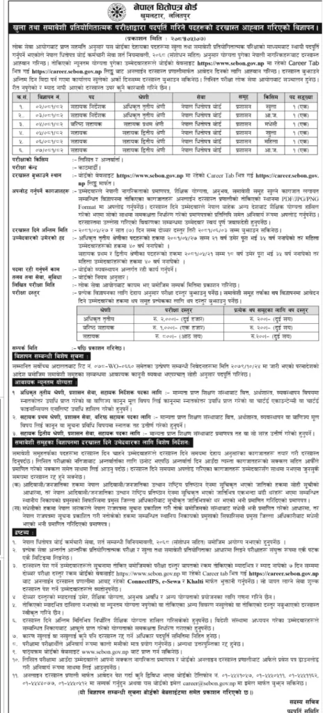 बोर्डले आज एक सूचना जारी गर्दै सहायक निर्देशक, वरिष्ठ सहायक लगायत पदमा ६ जना कर्मचारी माग गरेको हो।