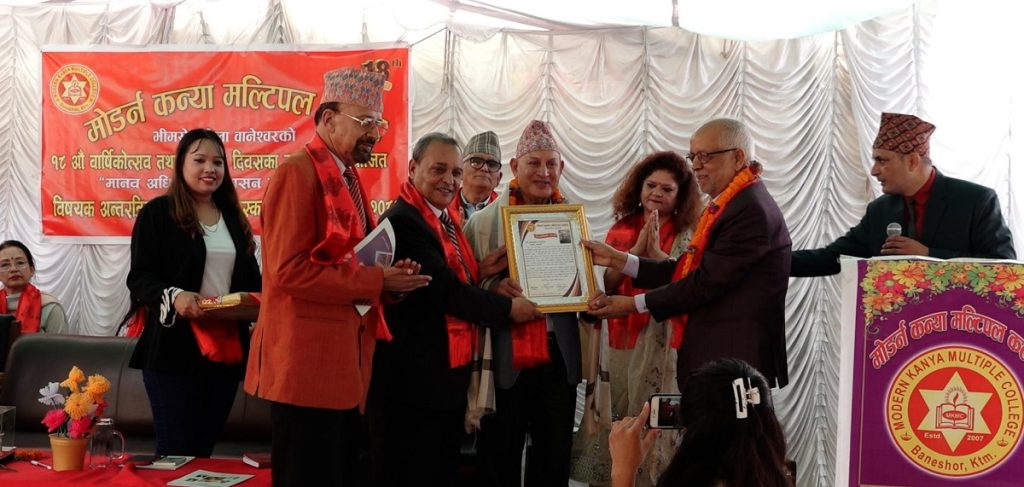 साहित्यकार रमेशमोहन भट्टराईलाई ‘ज्येष्ठ नागरिक सम्मान’का साथै विभिन्न विधामा उत्कृष्ट नतिजा प्राप्त गर्ने १० जना छात्रालाई पदक तथा प्रमाणपत्र प्रदान गरिएको थियो ।