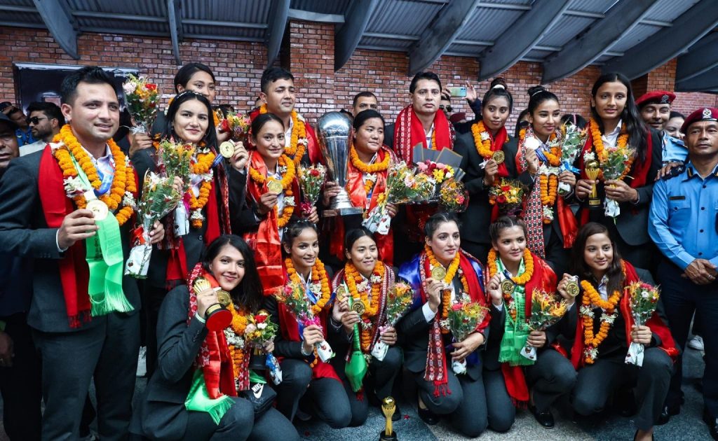 नेपाल प्रहरीको टिमलाई त्रिभुवान अन्तराष्ट्रिय विमानस्थलमा भव्य स्वागत गरिएको छ ।