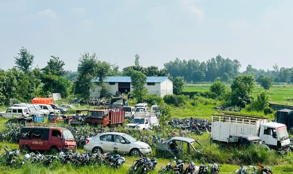 भन्सार कार्यालयको पार्किङ क्षेत्रमा खुला आकाशमुनि वषौँदेखि राखिएका सवारीसाधनमाथि झारपात पलाएको छ ।