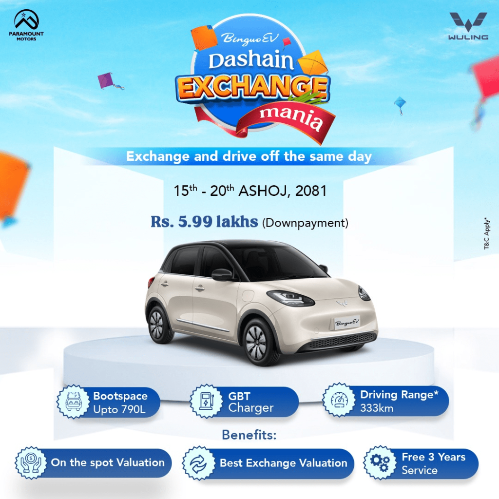 वुलिङ्ग बिंगुओ ईभीले दशैं अगाडि ल्यायाे विशेष एक्सचेन्ज अफर