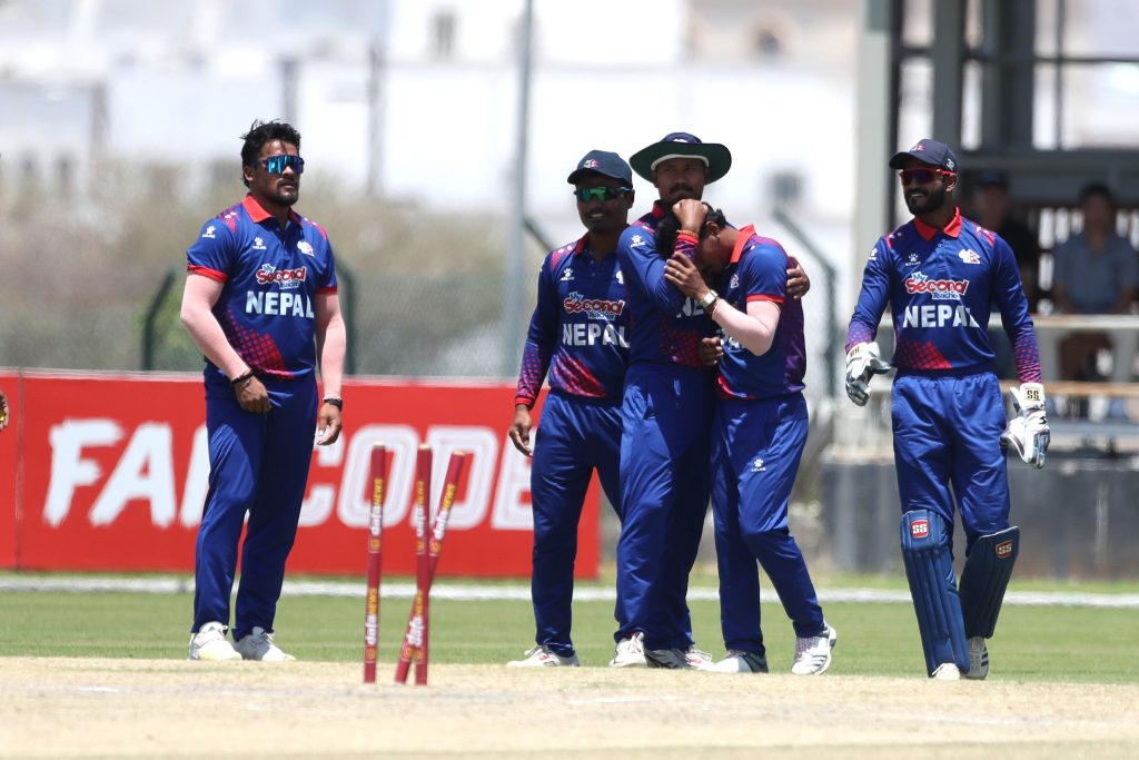 अर्जुन साउद ७, अनिल कुमार साह २५, देव खनाल १५, भीम सार्की १६, आरिफ शेख १८, दीपेन्द्रसिंह ऐरी २७, कुशल भुर्तेल डक, गुल्सन झा ६ रनमा आउट भए ।