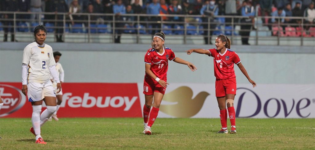 खेलको १३औं मिनेटमै रेखा पौडेलले तेस्रो गोल गरिन् । अमिषाको क्रसमा बक्सभित्र पुग्दै रेखाले भली गोल गरेकी हुन् । ३६औं मिनेटमा रेखाले ब्यक्तिगत दोस्रो गोल गरेकी हुन् । सावित्राले बक्सबाहिरबाट हानेको प्रहार रेखालाई लाग्दै गोल हुन पुगेपछि पहिलो हाफमै नेपालले ४–० को अग्रता बनायो । दोस्रो हाफमा भने नेपालले दुई गोल मात्रै गर्याे । ४७औं मिनेटमा अमिषा कार्कीले हेडरमा पाँचौ गोल गरिन् । खेलको इन्जुरी समयमा रश्मीकुमारी घिसिङले छैटौं गोल गरिन् । उनले कर्नरमा हेडर गोल गरेकी हुन् ।