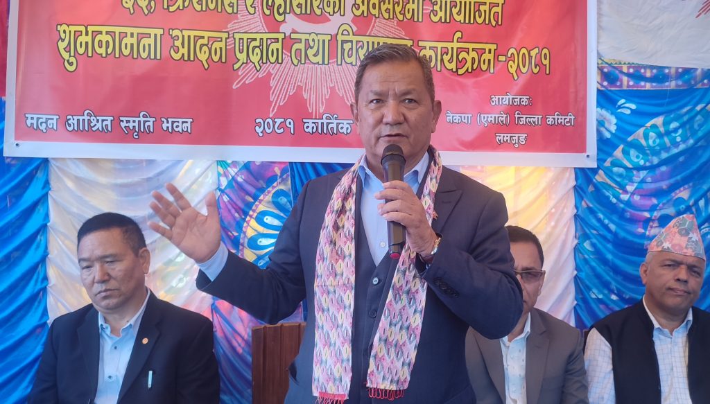 नेपाल कम्युनिष्ट पार्टी (एमाले) जिल्ला कमिटीद्वारा दसैँ, तिहार, नेपाल संवत्, छठका अवसरमा बेँसीसहर नगरपालिका–८ मा आज बिहान आयोजित कार्यक्रममा उनले सरकारले बाढीपहिरो पीडित, सहकारीपीडित, कृषक, व्यवसायी, निर्माण व्यवसायीलगायत सबै पेसाकर्मीलाई सहयोग पुग्नेगरी सरकारले काम गरिरहेको बताए ।