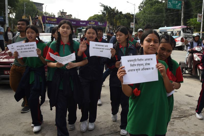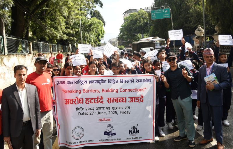 बहिरा दृष्टिविहीन अभिभावक समाज, नेपाल नेत्रहीन सङ्घ र राष्ट्रिय बहिरा महासङ्घ नेपालद्वारा संयुक्त रुपमा आयोजित प्रथम अन्तर्राष्ट्रिय श्रवण दृष्टिविहीन दिवसको अवसरमा विभिन्न सन्देशमुलक प्लेकार्डसहित रानीपोखरी, दरवार स्कुल, जमल, घण्टाघर हुँदै शान्तिवाटिकाको परिक्रमा गरिएको हो ।