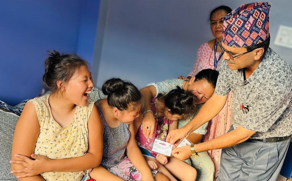 झापा। विर्तामोड नगरपालिका–५ मा बहुअपाङ्गता भएका तिम्ल्याहा दिदीबहिनीले घरमै नागरिकता र अपाङ्गताको प्रमाणपत्र प्राप्त गरेका छन्। नगरपालिकाका उपप्रमुख नगेन्द्रप्रसाद सङ्ग्रौलाले उनीहरुलाई घरमै पुगेर अपाङ्गतासम्बन्धी ‘क’ वर्गको रातो कार्ड प्रदान गरिएको बताए।