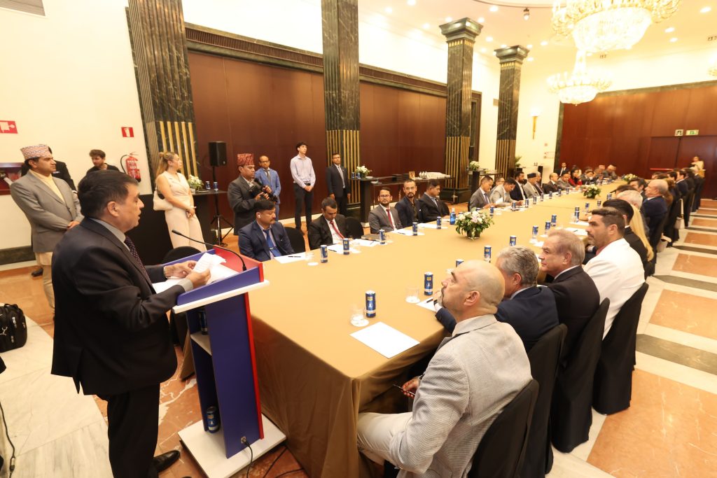 स्पेन वाणिज्य तथा उद्योग महाङ्घका सदस्य, व्यापारीक समुदायका अगुवा, नेपाली समुदायका प्रतिनिधि र कूटनीतिक व्यक्तित्व सहभागी कार्यक्रममा अध्यक्ष ढकालले नेपालको अर्थतन्त्रको मेरुदण्डका रूपमा रहेको पर्यटन उद्योगमा लगानी गरेमा प्रतिफल पाउन सहज हुने बताए ।
