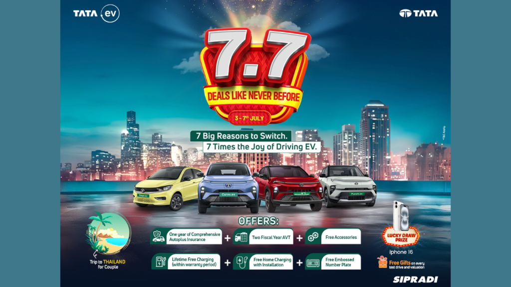 “७.७ डिल्स लाइक नेभर विफोर” कार्यक्रम अन्र्तरगत ग्राहकहरुलाई लक्षित गर्दै हरेक टाटा गाडीको खरिदमा जोडीका लागि थाइल््याण्ड भ्रमण, साथै एक वर्षको अटोप्लस बीमा, दुई आर्थिक वर्षसम्मको सवारीकर, एसेसोरिज, वारेन्टी अवधिभर चार्जिङ सेवा, चार्जिङ बक्ससहित जडान, र एम्बोस्ड नम्बर प्लेट जस्ता सुविधा निःशुल्क रुपमा प्राप्त गर्न सक्नेछन ।