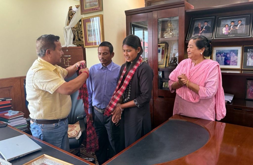 बिहीबार गोमालाई भाटभटेनीस्थित आफ्नै कार्यालयमा बोलाएर अध्यक्ष गुरूङ र श्रीमती सावित्री गुरूङले एकलाख रुपैयाँ नगद, एउटा ल्यापटप र सम्मानपत्रसहित सम्मान गरेका थिए ।