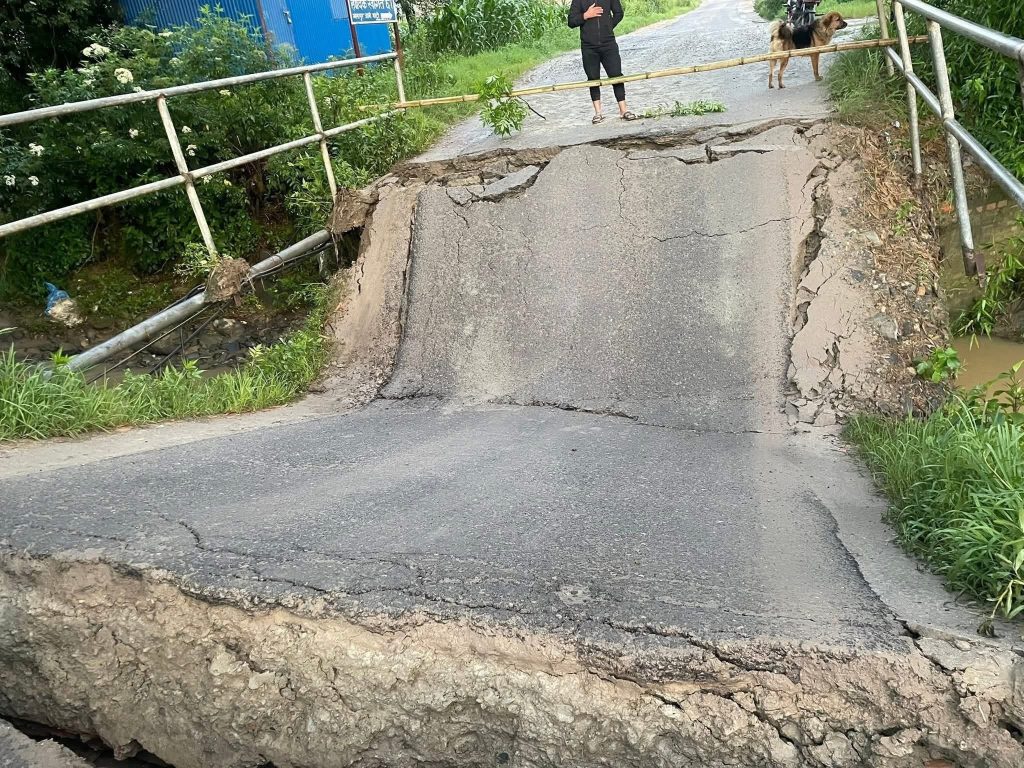 काभ्रेपलाञ्चोकमा नालामा पुल भाँचियो : राजधानी जाने वैकल्पिक सडक अवरुद्ध