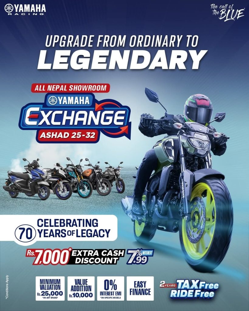 यो क्याम्पेन केवल एक्सचेन्ज मात्र होइन, यो त यामाहाको ७० वर्षदेखिको उत्कृष्टता र गौरवको उत्सव हो भने विश्वसनीय जापानी इन्जिनियरिङ र पुस्तौंदेखि कायम गुणस्तरको प्रतिबद्धतालाई एकसाथ ल्याउने अवसर पनि हो।