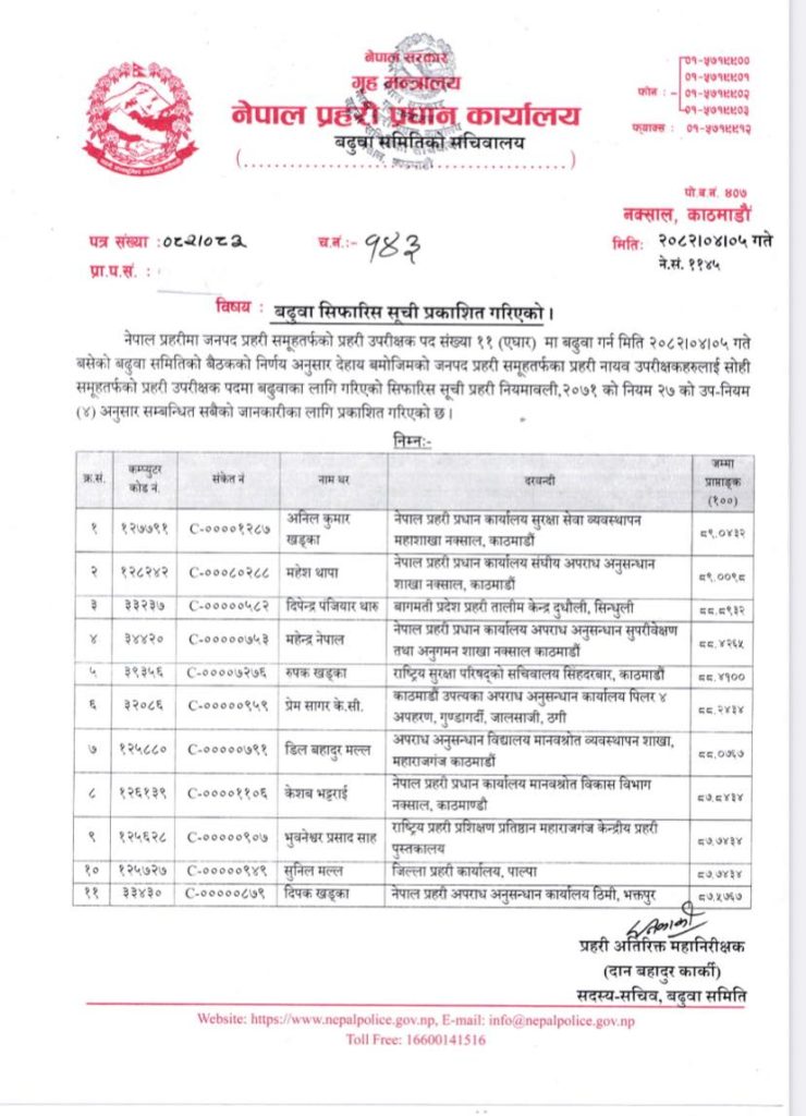 बढुवाका सिफारिस अहुनेहरुमा डीएसपीहरू अनिलकुमार खड्का, महेश थापा, दिपेन्द्र पञ्जियार थारु, महेन्द्र नेपाल, रूपक खड्का, प्रेमसागर केसी, डिलबहादुर मल्ल, केशव भट्टराई, भुवनेश्वरप्रसाद साह, सुनिल मल्ल र दीपक खड्का रहेका छन् ।