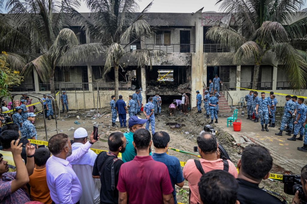 बङ्गलादेशको एक स्कुलमा प्रशिक्षण लडाकू जेट दुर्घटना हुँदा २५ बालबालिका र अन्य दुई जनासहित २७ जनाको मृत्यु भएपछि मङ्गलबार परिवारहरू र शिक्षकहरू भेला भएका छन् । यो दशकौँको सबैभन्दा घातक विमान दुर्घटना हो ।