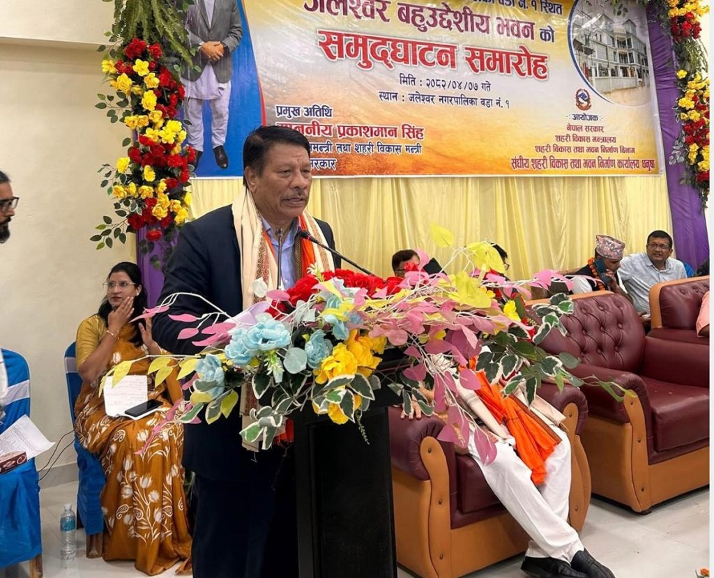 उपप्रधानमन्त्री सिंहले अहिले पार्टीका सबै नेता कार्यकर्ताले सङ्गठन सुदृढीकरण तथा सहकार्य र समन्वयमा पार्टीलाई बलियो बनाउँदै लैजानुको विकल्प नरहेको बताए। नेता सिंहले मधेसमा अहिले खानेपानी र सिँचाइको हाहाकार रहेकाले यसको लागि सङ्घीय सरकारले ठोस कदम चाल्ने निर्णय गरिसकेको र कुनै न कुनै वैकल्पिक उपाय निकालिने बताए।अन्त्यमा मन्त्री सिंहले सङ्घीय सहरी विकास मन्त्रालयको सहयोगमा जलेश्वरमा नवनिर्मित ‘जलेश्वर बहुउद्देश्यीय भवन’ ले जलेश्वर नगरपालिका क्षेत्रभित्रका जनताका लागि बहुउपयोगी सावित होस् भन्ने आशा व्यक्त गरे।