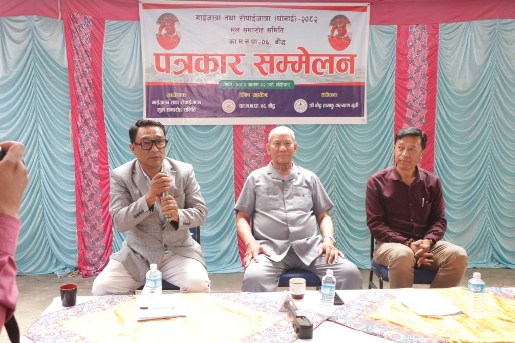 साउन २५ र २६ गते दुई दिनसम्म बौद्ध परिसरमा विविध कार्यक्रम गरि उक्त पर्व मनाउने भएको हो । सो कार्यक्रमलाई भव्य रुपले सम्पन्न गराउन विभिन्न उपसमिति समेत गठन गरिएको विहिवार आयोजित पत्रकार सम्मेलनमा जानकारी दिए । श्री बौद्ध तामाङ कल्याण गुठिका अध्यक्ष जयमङ्गल लामाको संयोजकत्वमा गाइजात्रा तथा रोपाइँजात्रा मूल समारोह समिति गठन गरि विभिन्न उपसमितिलाई जिम्मेवारी दिइएको पत्रकार सम्मेलनमा बताए ।