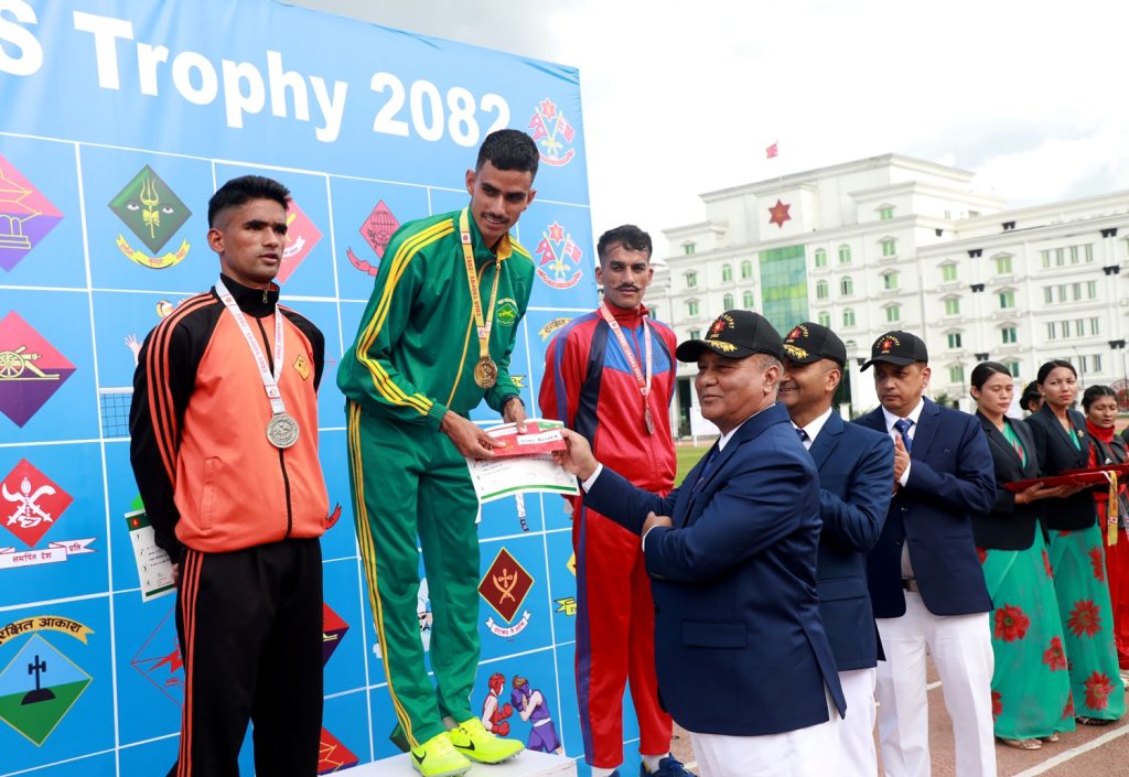 उद्घाटन खेलका रूपमा पुरुषतर्फ एक हजार ५०० मिटर र महिलातर्फ ८०० मिटर दौड आयोजना गरियो। यसमा पुरुषतर्फ सुदूरपश्चिम पृतनाका मुकेशबहादुर पालले यसअघि सङ्गठनका नाममा कायम रहेको रेर्कड तोड्दै तीन मिनेट ५४।०२ मा दूरी पार गरी प्रथम भए। त्यसैगरी मध्यपृतनाका लोकेन्द्र बोहोरा दोस्रो र विशेषफोज बाहिनीका अक्कलबहादुर पाल तेस्रो घोषित भए ।