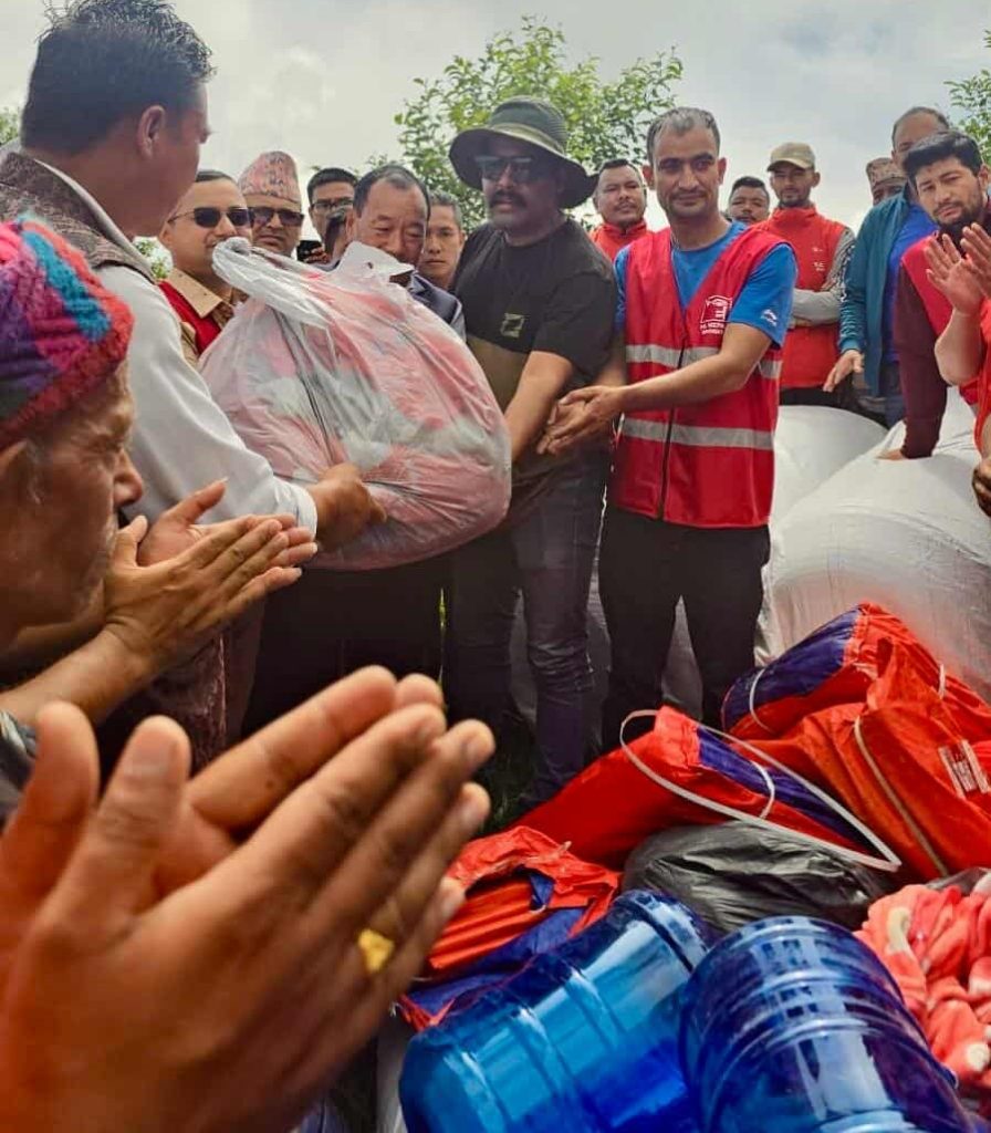 प्रभावित परिवारलाई राहतस्वरूप त्रिपाल, खानेपानी जार, लत्ता–कपडा, ब्ल्याङकेट, म्याट्रेस सहित नगद एक लाख रुपैयाँ हस्तान्तरण गरिएको छ।