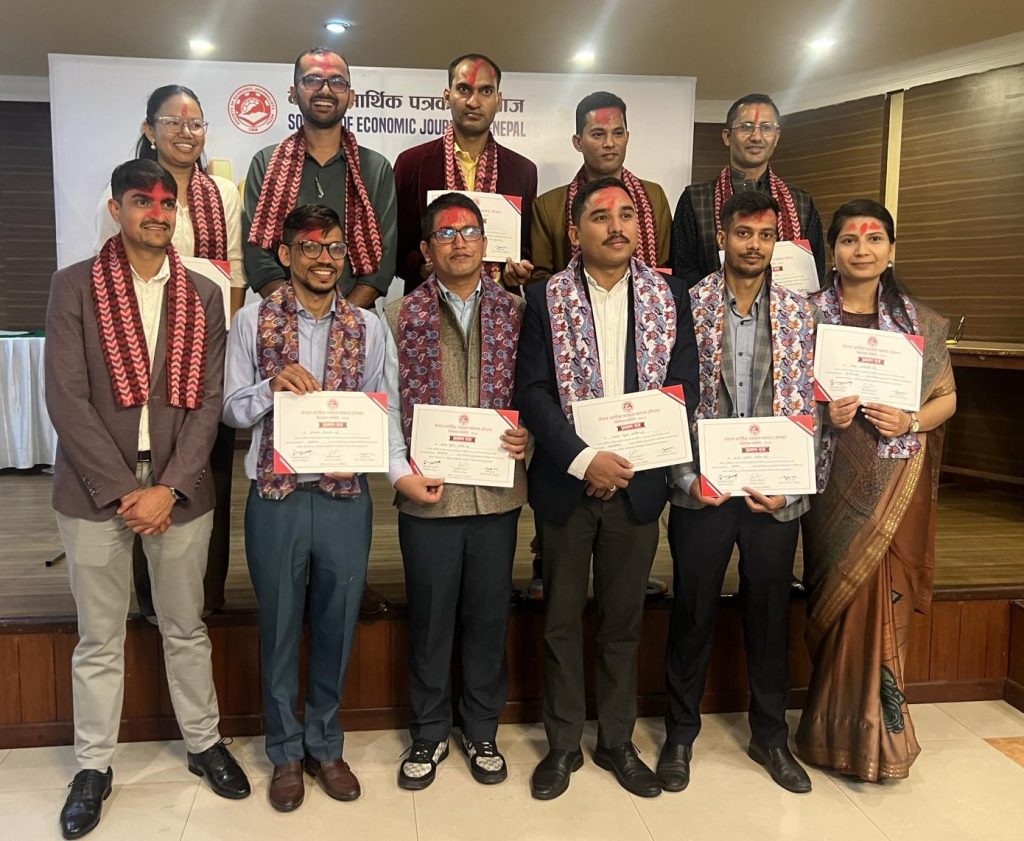 यसैबीच, नवनिर्वाचित कार्यसमितिलाई प्रमाणपत्र वितरण गरिएको छ । यहाँ आयोजित कार्यक्रममा प्रमुख निर्वाचन अधिकृत धर्मेन्द्र झाले प्रमाणपत्र वितरण गरेका हुन् । त्यस अवसरमा उनले नवनिर्वाचत कार्यसमितिले सेजनको गरिमालाई थप उचो बनाउँदै आर्थिक क्षेत्रका मुद्दा उठानमार्फत नेपाली मिडियामा सशक्त उपस्थिति जनाउने विश्वास व्यक्त गरे ।