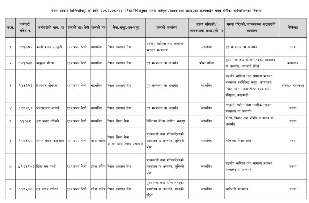 बिहिबार बसेको मन्त्रीपरिषद्को बैठकले सहसचिवहरुको सरुवा गरेको हो ।