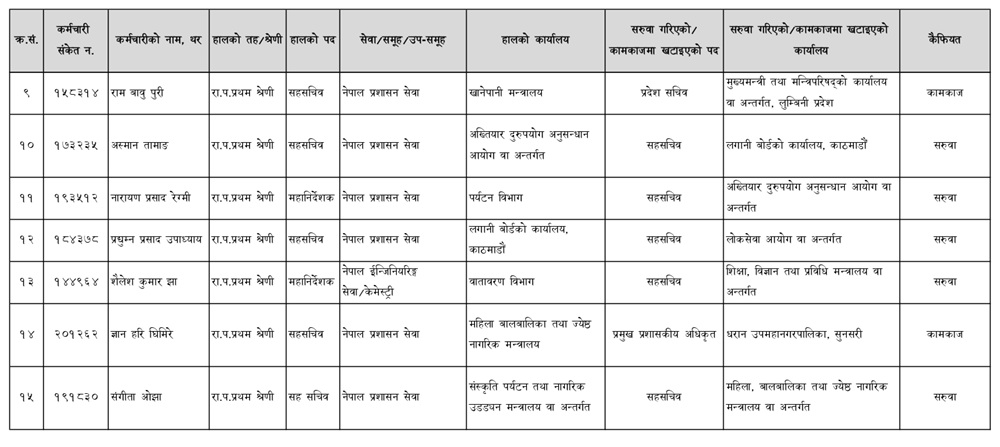 १५ सहसचिवको सरुवा, को कहाँ ? (सूचीसहित)