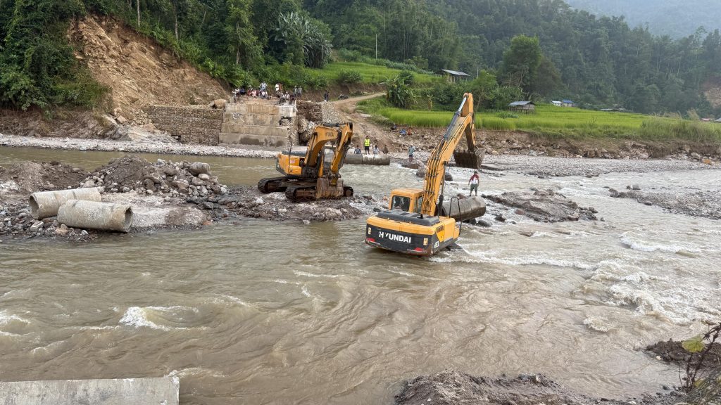 त्यो पार नलागेपछि अहिले जोगमाई खोलामा डाइभर्सन निर्माणको काम भइरहेको छ”, उनले भने, “तर पर्याप्त ह्युमपाइप नहुँदा केही दिन ढिला हुने सम्भावना छ ।” उनका अनुसार पाँचथरबाट ह्युमपाइप मगाइएको र मङ्गलबारसम्म आइपुग्ने व्यवस्था गरिएको छ । डाइभर्सन निर्माणका लागि हाल चारवटा स्काभेटर परिचालन गरिएको छ । जिल्ला प्रशासन कार्यालय इलामले आइतबार सरोकारालासँगको स्थलगत निरीक्षणपछि मेची राजमार्गको विकल्पका रूपमा तिल्केनी–सिमलगोलाइ सडक सञ्चालन गर्ने निर्णय गरेको थियो ।