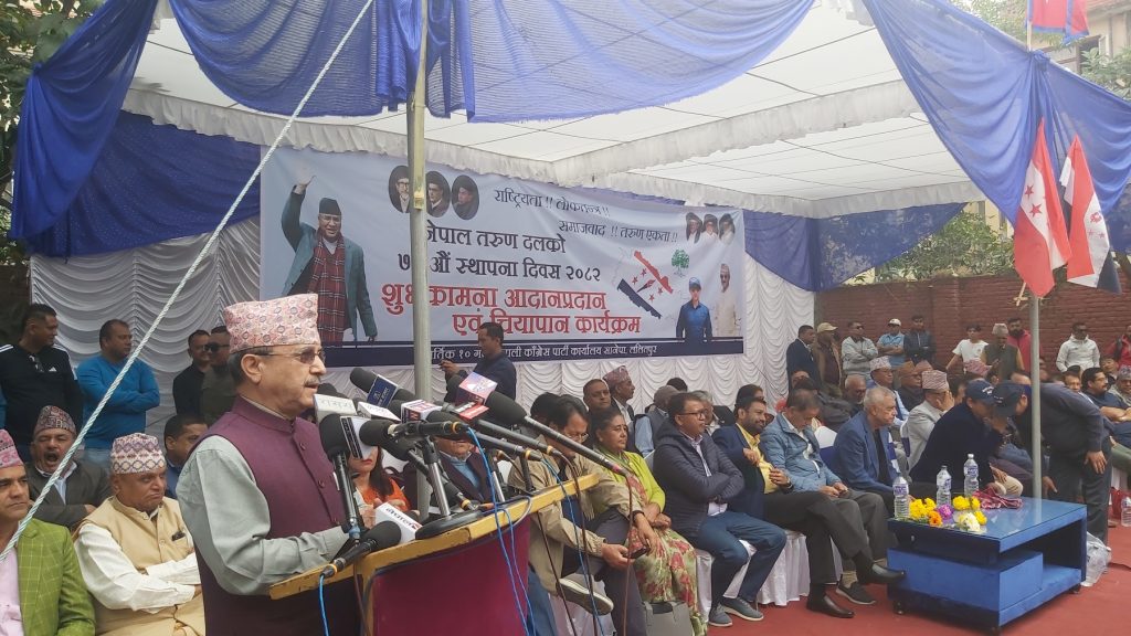 नेपाल तरुण दलको ७३औँ स्थापना दिवसका अवसरमा नेपाली कांग्रेसको केन्द्रीय कार्यालय सानेपामा आज आयोजित शुभकामना आदानप्रदान एवम् चियापान कार्यक्रममा उनले नेपाल इतिहासकै प्रतिकूल अवस्थामा उभिएको र कांग्रेस पार्टीसमेत प्रतिकूल अवस्थामा रहेको उल्लेख गर्दै देश जोगाउन सङ्कल्पसहित अगाडि बढ्न आग्रह गरे ।