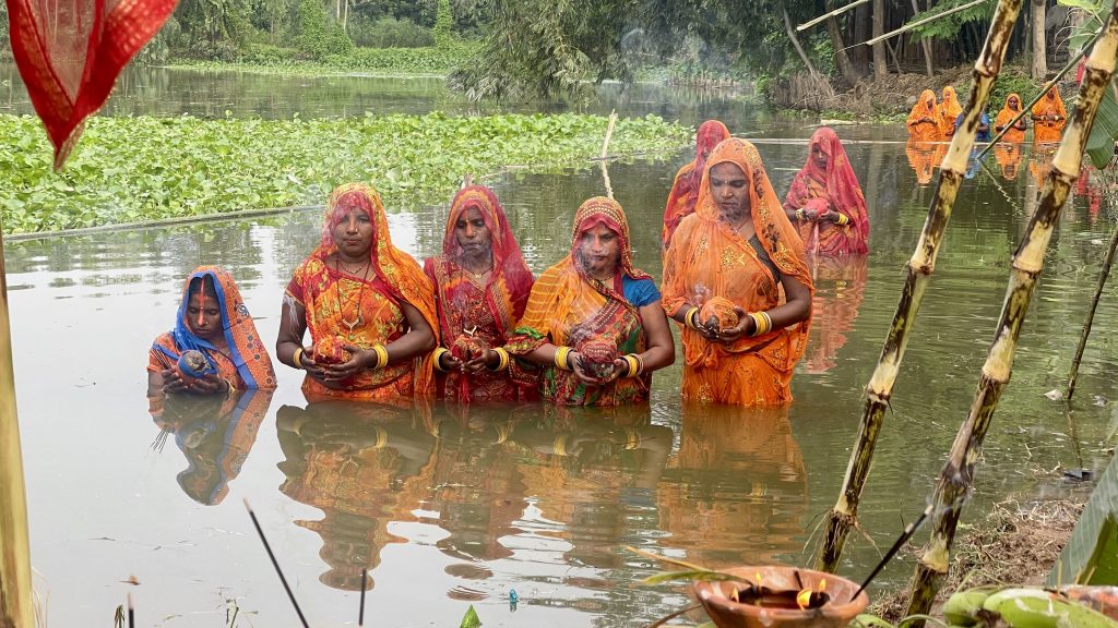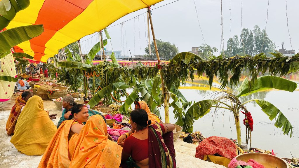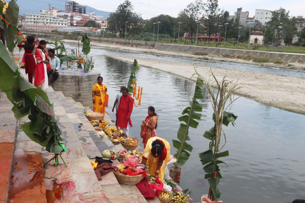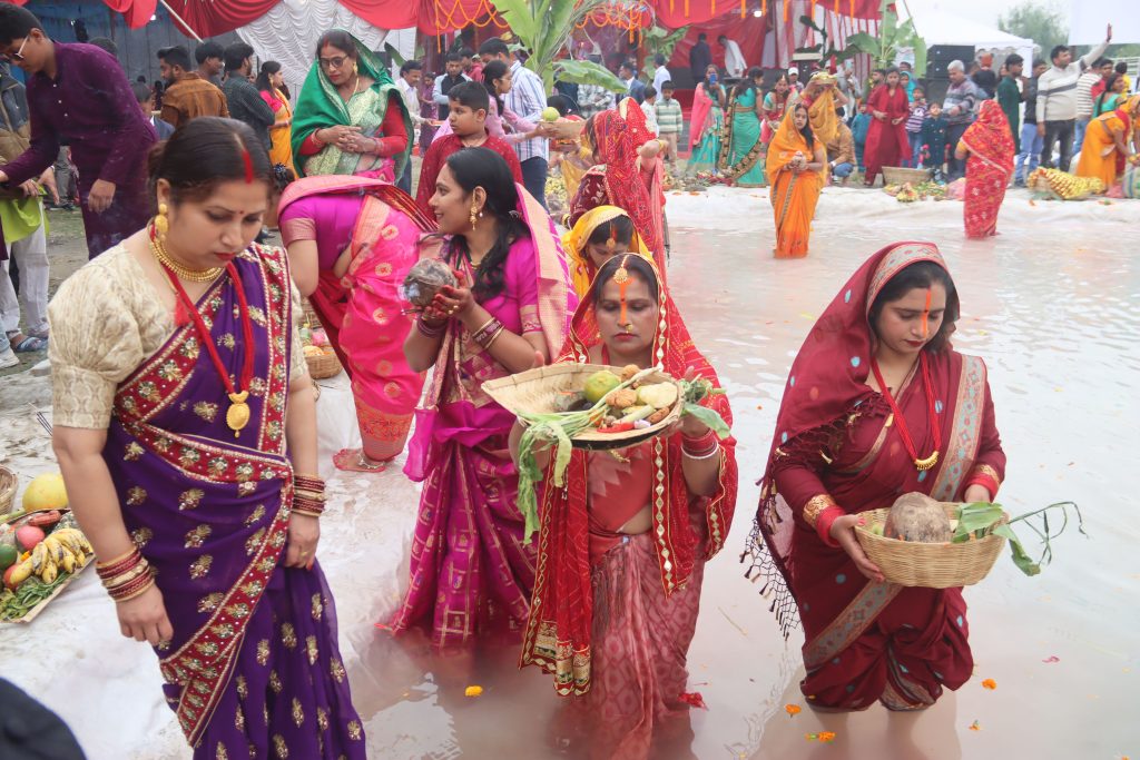 छठ पूजाको तेस्रो दिन सोमबार अस्ताउँदो सूर्यकाे पूजा आराधना गरी मनइयाे ( फाेटाेफिचर )
