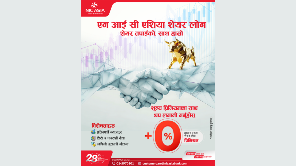 शून्य प्रिमियमसहित प्रतिस्पर्धी ब्याजदरमा एनआईसी एसिया बैंकको ‘सेयर लोन’
