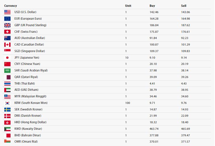 काठमाडौं – नेपाल राष्ट्र बैङ्कले बुधबारका लागि विदेशी मुद्राको विनिमय दर तोकेको छ। राष्ट्र बैङ्कका अनुसार अमेरिकी डलर एकको खरिद दर १४२ रुपैयाँ ४६ पैसा र बिक्रीदर १४३ रुपैयाँ ०६ पैसा रहेको छ।
