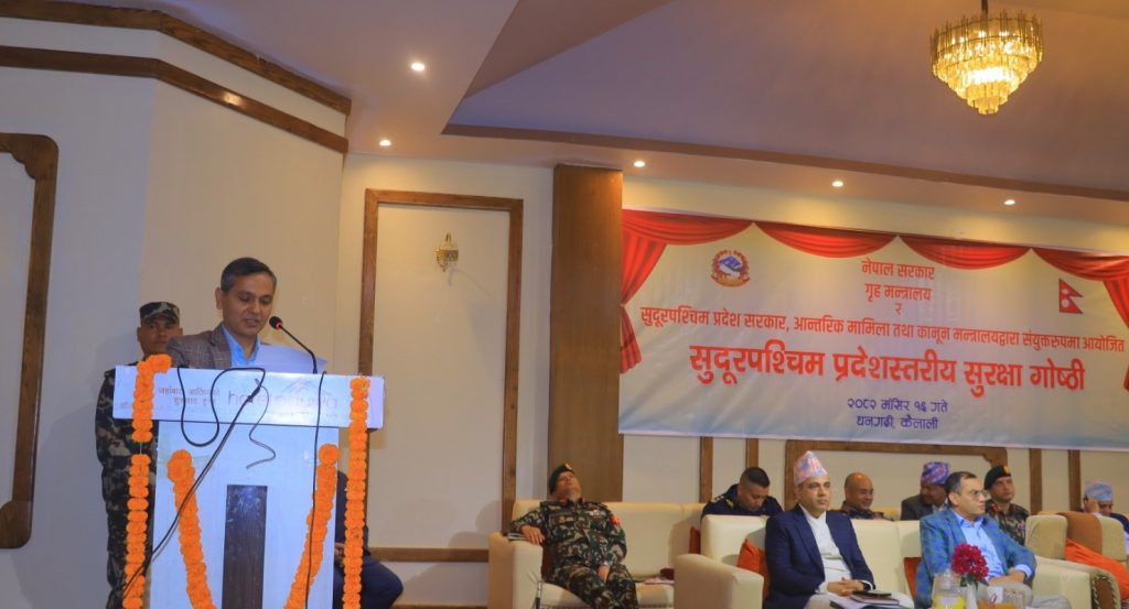 धनगढीमा आज आयोजित सुदूरपश्चिम प्रदेशस्तरीय सुरक्षा गोष्ठीमा गृहमन्त्री अर्यालले भदौ २३ र २४ गतेको जेनजी आन्दोलनका क्रममा लुटिएका हतियार र फरार कैदीबन्दीका विषयमा धेरै अतिरञ्जित गर्न जरुरी नभएको उल्लेख गरे।