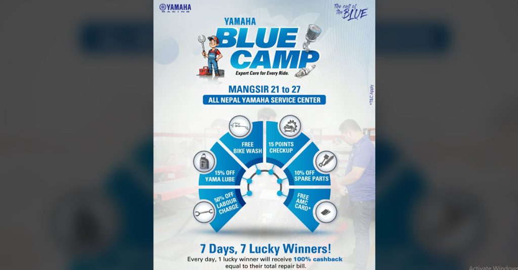 यस अभियानका बारेमा बोल्दै एमएडब्लू राइड्स प्रा.लि. का कार्यकारी निर्देशक तथा प्रमुख कार्यकारी अधिकृत दीपक कुमार अग्रवालले भने, ‘यामाहा सधैँ गुणस्तर, विश्वसनीयता र उत्कृष्ट सर्भिस प्रदान गरेर आफ्ना ग्राहकहरूसँग दीर्घकालीन विश्वास निर्माण गर्ने कुरामा विश्वास गर्दछ। ूयामाहा ब्लू क्याम्पू मार्फत हामी हाम्रा राइडरहरूलाई उहाँहरूको सुरक्षा, सन्तुष्टि र मानसिक शान्ति सुनिश्चित गर्ने एक परिष्कृत सर्भिस अनुभव दिन चाहन्छौँ। यो पहल हाम्रो यामाहा परिवारलाई कदर गर्ने र हरेक यात्रालाई सहज, रोमाञ्चक र चिन्तामुक्त राख्ने हाम्रो आफ्नै तरिका हो।’