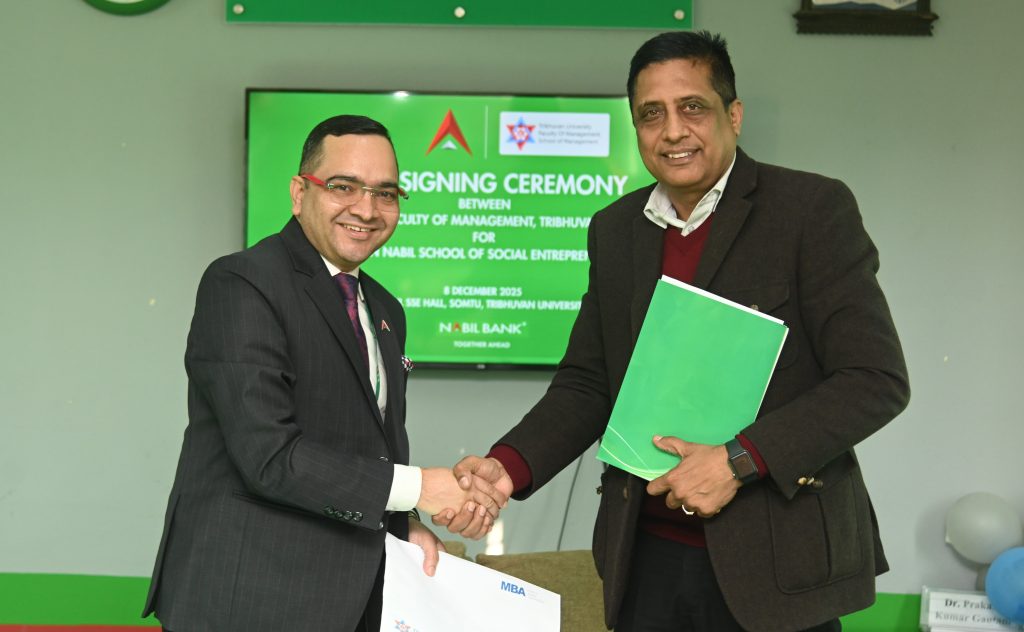 व्यवस्थापन संकायको कार्यलयमा भएको नवीकरण सम्झौतामा नबिल बैंकका प्रमुख कार्यकारी अधिकृत (सिइओ) मनोजकुमार ज्ञवाली र त्रिवि व्यवस्थापन संकायका डिन प्रा. डा. महानन्द चालिसेले हस्ताक्षर गरेका हुन् । यस सम्झौतापछि त्रिविसँगको यस कार्यक्रम सन् २०२८ सम्म निरन्तर रुपमा सञ्चालन हुनेछ ।