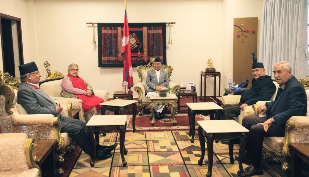 राष्ट्रपतिको पहलमा पहिलोपटक प्रधानमन्त्री कार्की, देउवा, ओली र प्रचण्डबीच छलफल हुँदै
