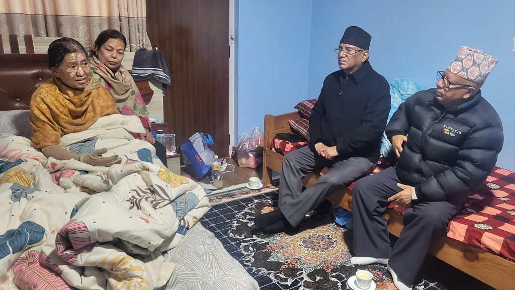 झलनाथ पत्निलाई भेट्न पुगे प्रचण्ड र माधव