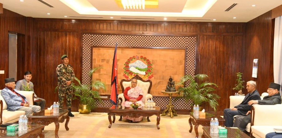 यसअघि मंगलबार राष्ट्रपति रामचन्द्र पौडेलको अगुवाइमा प्रधानमन्त्रीसहित तीन दलका शीर्ष नेताको भेटवार्ता शीतल निवासमा भएको थियो ।