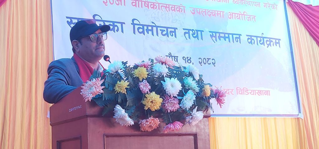 राष्ट्रिय प्रकृति संरक्षण कोषद्वारा सदर चिडियाखाना व्यवस्थापनको ३०औँ वार्षिकोत्सवका अवसरमा आज जावलाखेलमा आयोजित स्मारिका विमोचन तथा सम्मान कार्यक्रममा बोल्दै उनले मानव र प्राणीबीचको सम्बन्ध सुमधुर बनाउन चिडियाखानाले महत्त्वपूर्ण भूमिका खेलेको भन्दै सदर चिडियाखाना व्यवस्थापन पक्षको प्रशंसा गरे।