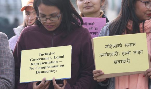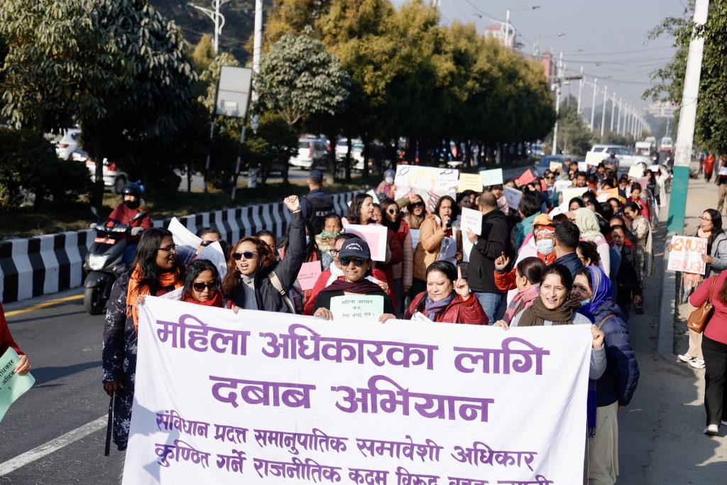 काठमाडौं। काठमाडौँ । महिला अधिकारका लागि दबाब अभियानले संविधान प्रदत्त समानुपातिक समावेशी अधिकार कुण्ठित गर्न राजनीतिक कदम चालिएको भन्दै माइतीघरमा विरोध प्रदर्शन गरेका छन्।