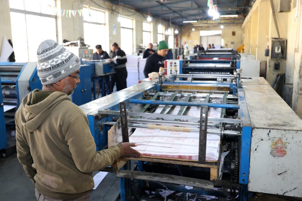 नेपाली सेनाको सुरक्षा घेरामा सानोठिमीस्थित जनक शिक्षा सामग्री केन्द्र लिमिटेडमा नमूना मतपत्र छपाइ भएकोे आयोगले जनाएको छ । उक्त निर्वाचनको समानुपातिक र प्रत्यक्ष दुवैतर्फ गरी करिब १० लाख थान नमूना मतपत्र छपाइ भएको आयोगका सूचना अधिकारी सुमन घिमिरेले जानकारी दिए ।