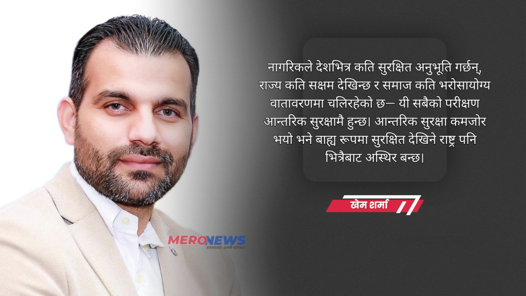 आन्तरिक सुरक्षा अपराध नियन्त्रण वा प्रहरीको नियमित काममा सीमित विषय होइन। यो राष्ट्रको स्थिरता, सामाजिक सन्तुलन, आर्थिक निरन्तरता र नागरिक–राज्य सम्बन्धको आधार हो। नागरिकले देशभित्र कति सुरक्षित अनुभूति गर्छन्, राज्य कति सक्षम देखिन्छ र समाज कति भरोसायोग्य वातावरणमा चलिरहेको छ—यी सबैको परीक्षण आन्तरिक सुरक्षामै हुन्छ। आन्तरिक सुरक्षा कमजोर भयो भने बाह्य रूपमा सुरक्षित देखिने राष्ट्र पनि भित्रैबाट अस्थिर बन्छ। नेपालवादका दृष्टिमा आन्तरिक सुरक्षा राष्ट्रको “आन्तरिक मेरुदण्ड” हो—यसमा दरार आयो भने शासन, अर्थतन्त्र र सामाजिक विश्वास सबै ढल्किन्छ। “आन्तरिक सुरक्षा कमजोर भयो भने राष्ट्र बाहिर होइन, भित्रैबाट चिरिन्छ।”
