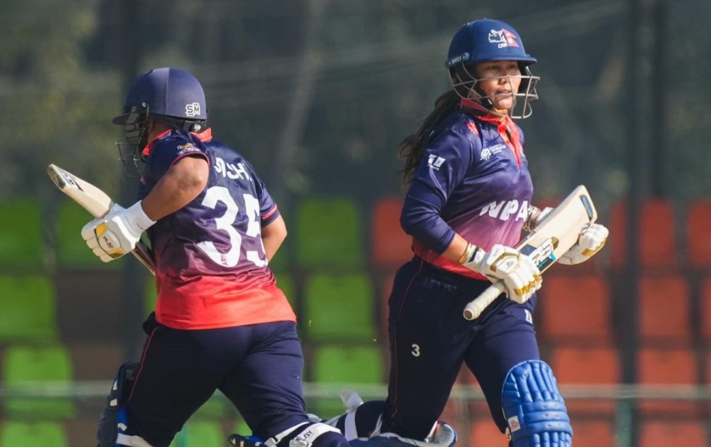 नेपालका लागि बिन्दु रावलले सर्वाधिक ४४ रन बनाइन् । उनले ५६ बलमा ६ चौका प्रहार गर्दै ४४ रन बनाएकी हुन् । सम्झना खड्काले ११ बलमा २६ रन बनाइन् भने रुविना क्षेत्रीले दुई छक्का र एक चौकासहित १० बलमा १७ रन बनाइन् ।